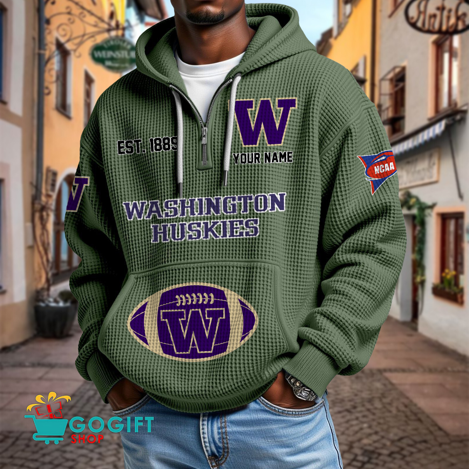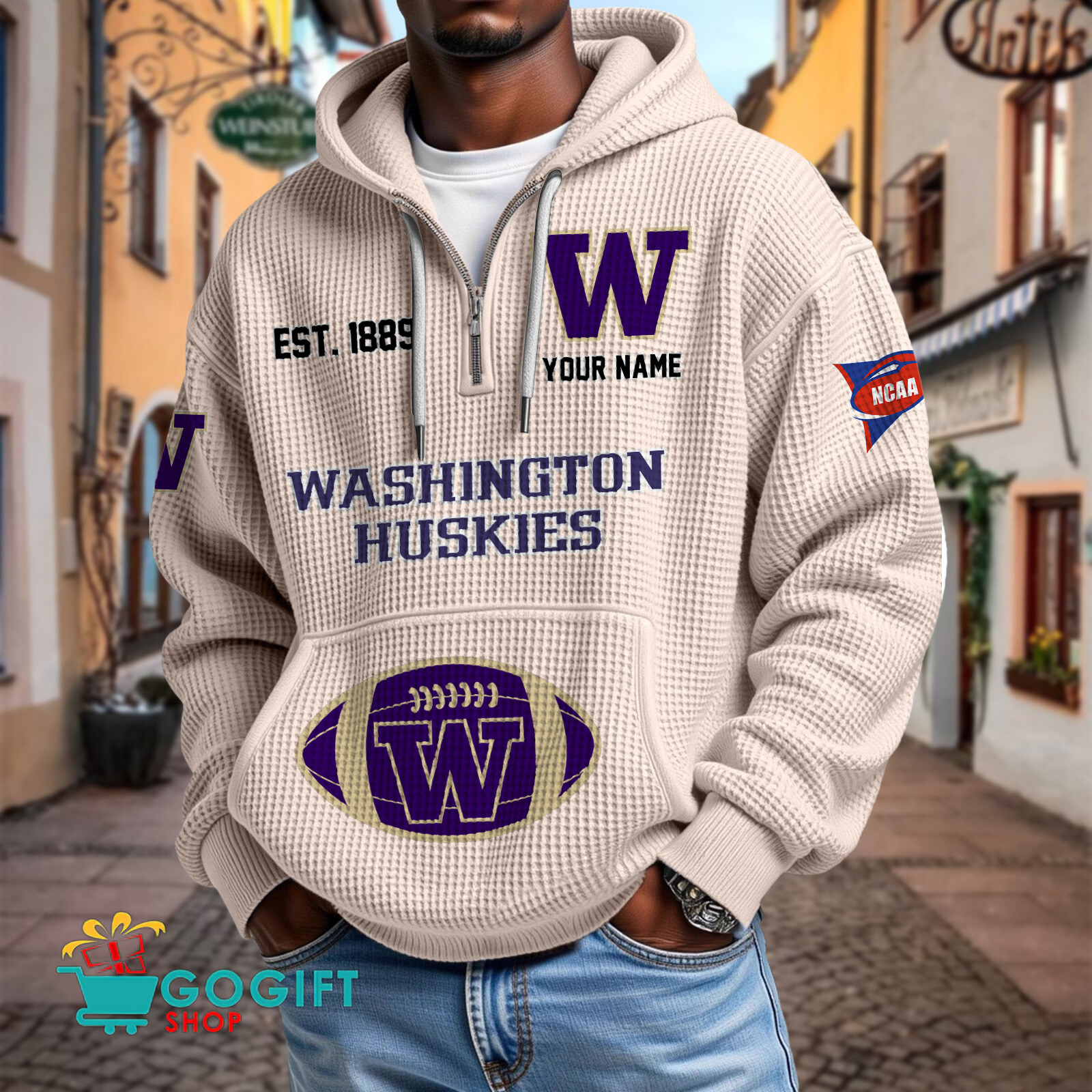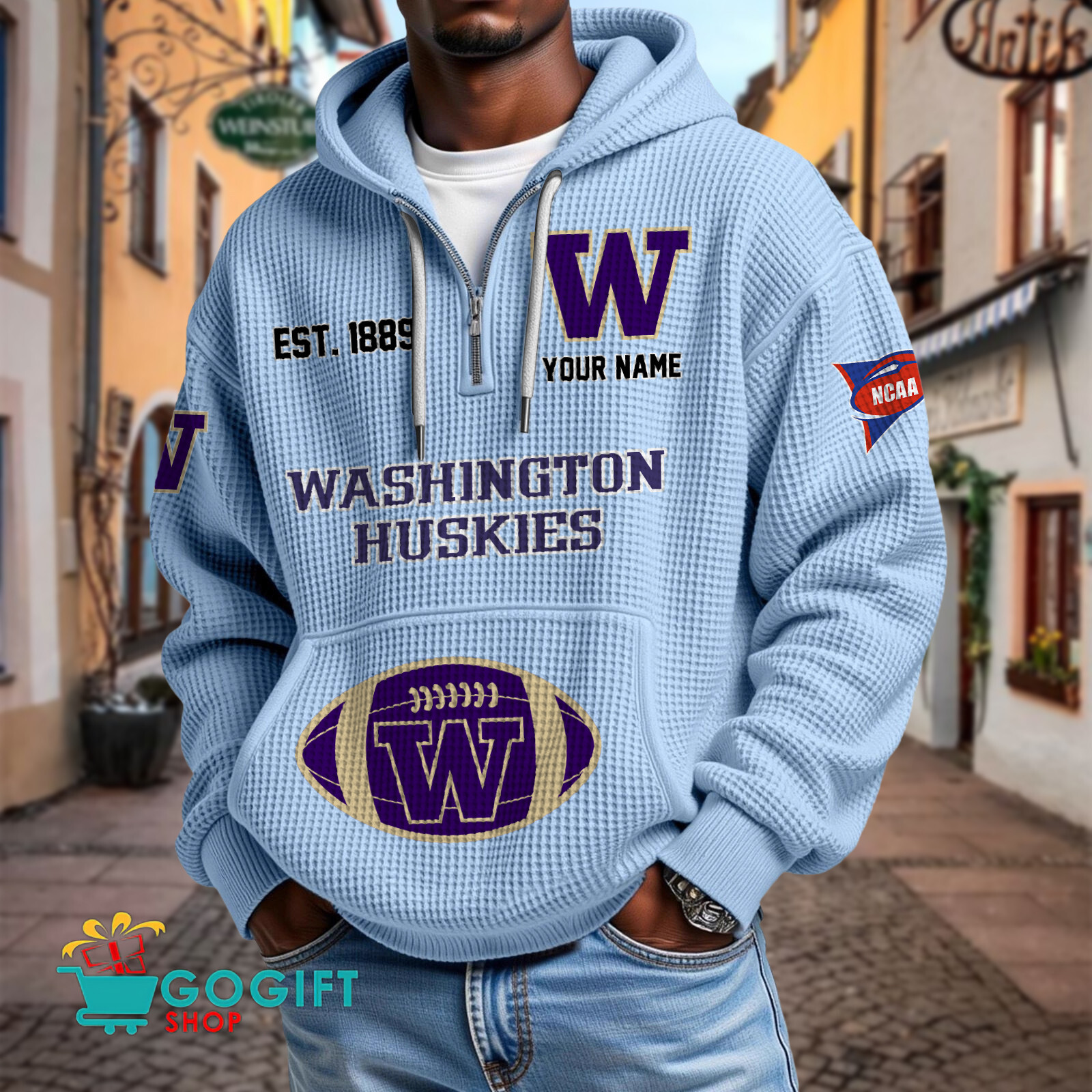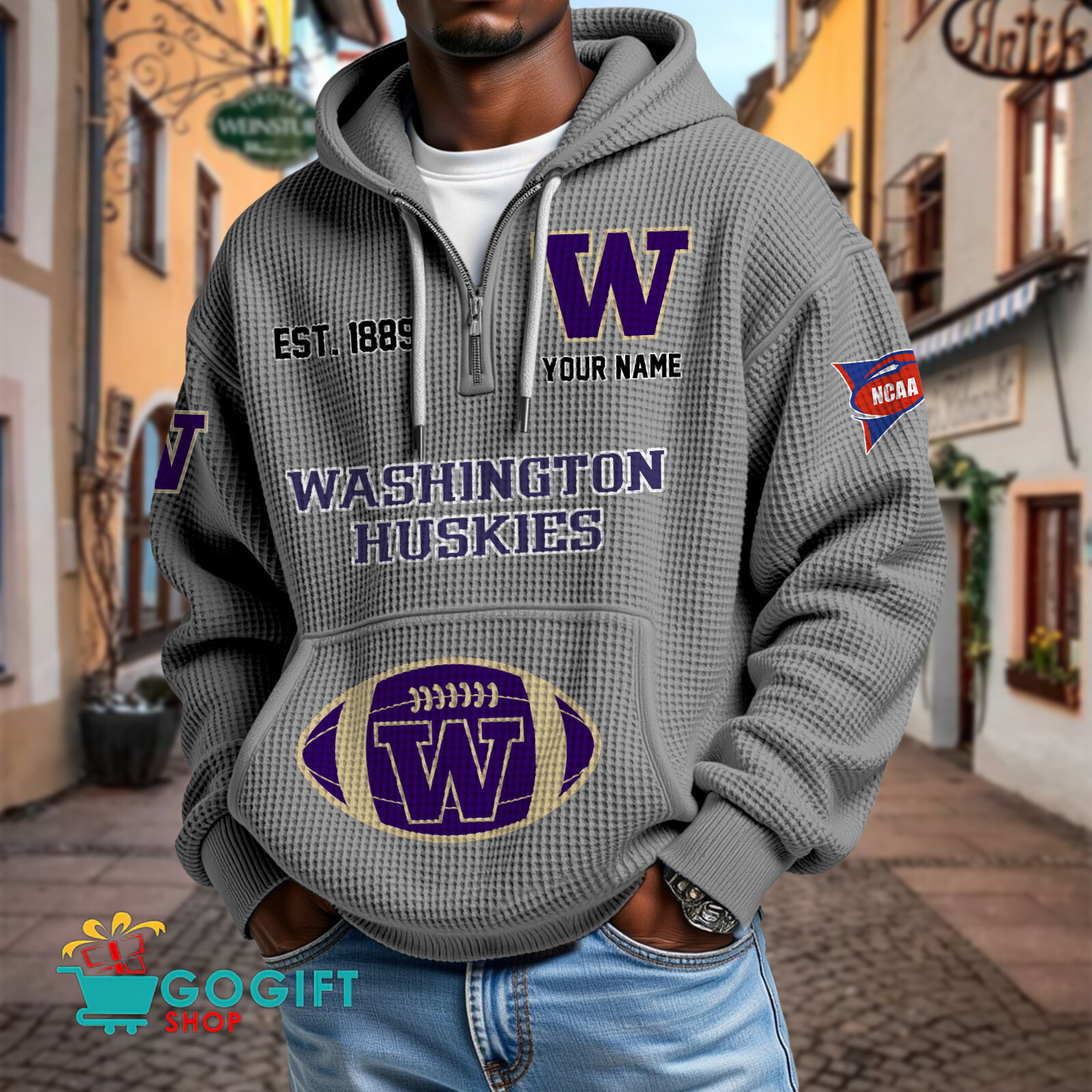 Washington Huskies – Waffle Hoodie Special Edition with Custom Name